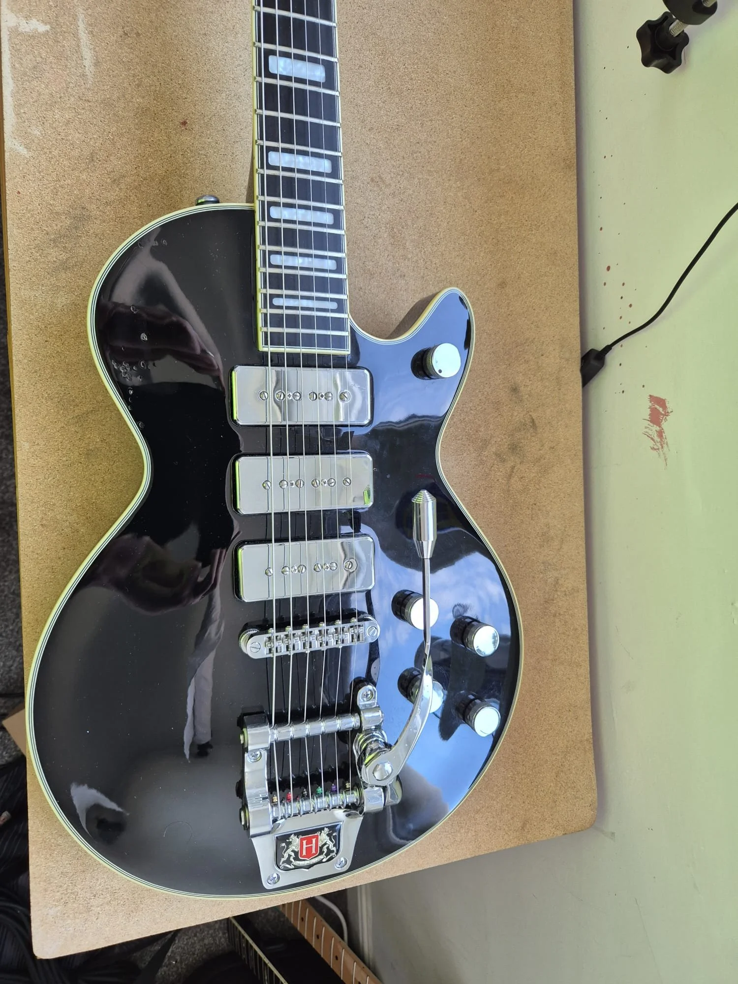 Hagstrom Super Swede!!!This beautiful super swede had quite a few indentations on the body and needed drop fills. She’s now back to her original self!!!!